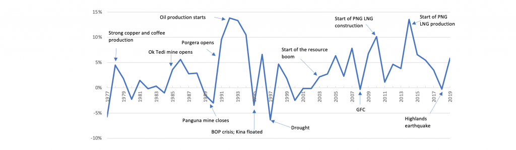 For any country, Gross Domestic Product or GDP is one of the most important economic variables. However, PNG has become over time one of the most resource-dependent economies in the world. For resource-dependent economies, GDP can be a misleading indicator of national economic activity, since a large proportion of the benefits from large resource projects typically flows offshore. Ideally, one would measure Gross National Income (GNI), that is, the economic activity of PNG nationals. However, GNI is no longer reliably measured in PNG. An alternative is to measure non-resource GDP, which is GDP minus the output of the resources sector. The rationale of this is not that the resources sector should be ignored, but rather that its benefits to PNG largely accrue in the stimulus it provides to the non-resource sector via tax and royalty payments.
